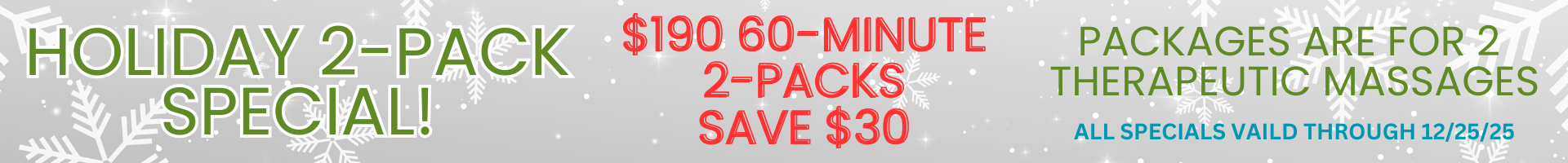 *Massage deals must be mentioned during checkout or over the phone. They are not automatically applied.